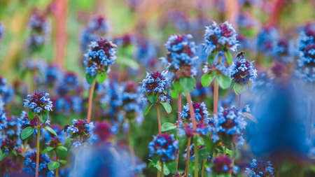 Blue Flowers of wild forest Thyme. Flowering of Medicinal herbs in Russia
