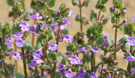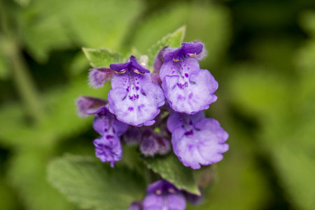 In spring, Glechoma hederacea grows and blooms in the wild