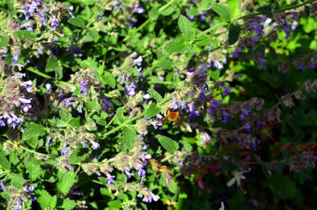 Catnip in garden. Catnip background in flowers garden. Aromatic flowers in rural garden.