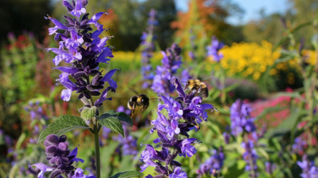 Captivating Catnip Blooms. Serenity of Catnip Flowers. The Delicate Beauty of Blue and Purple Petals. Vibrant Blooms of Catnip. City garden.