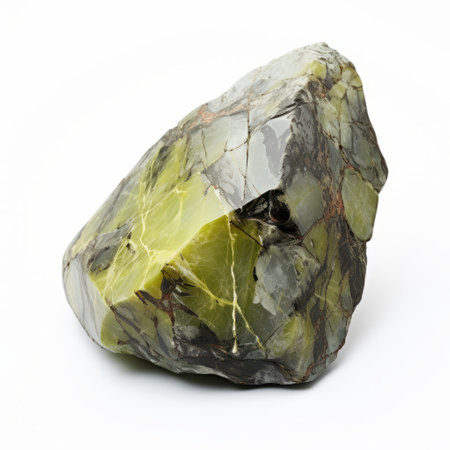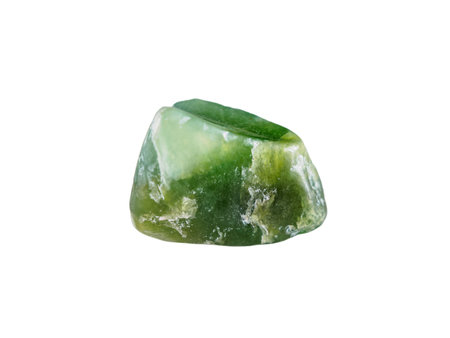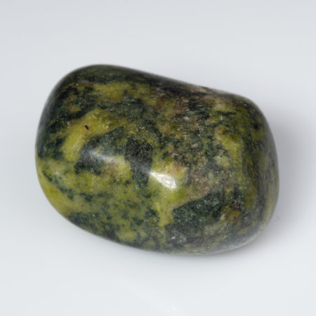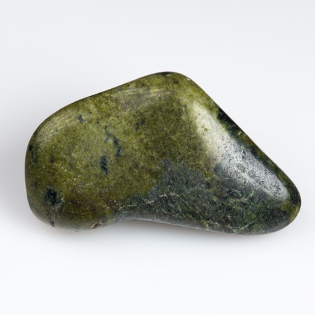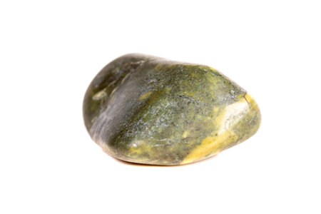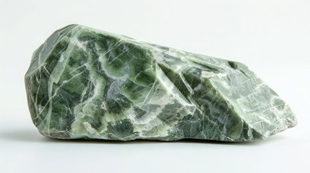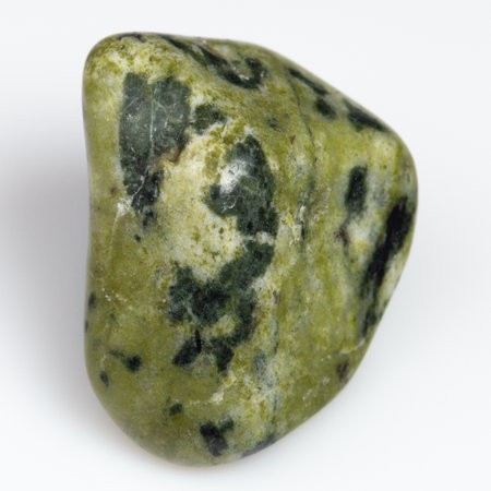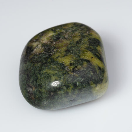 Exquisite Serpentine Gemstone with Unique Green Patterns on White Background.