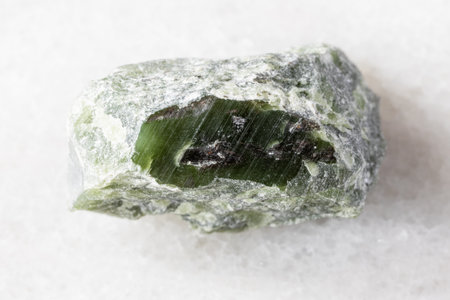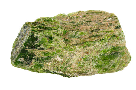 Macro photography of fuchsite natural mineral (chrome mica) on white background