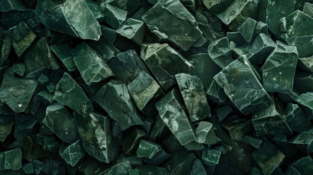 Close-up of numerous polished green stones, showcasing varied shapes, textures, and a rich, deep color palette.