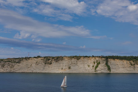 Layered limestone cliffs on the coast of the Black Sea in Russia