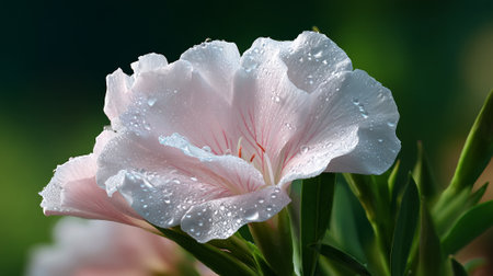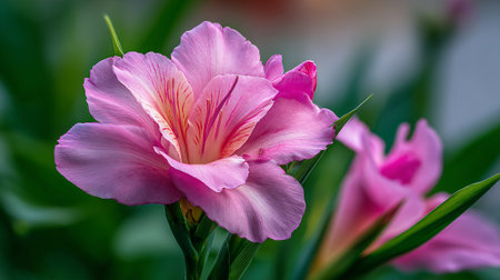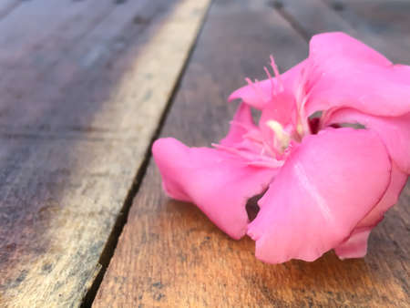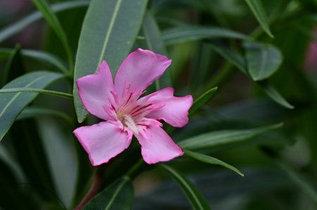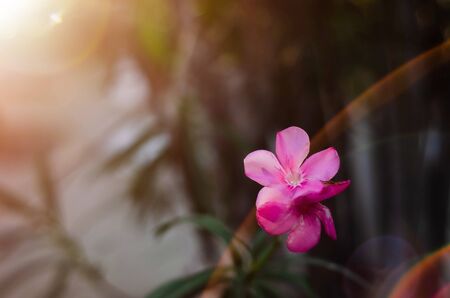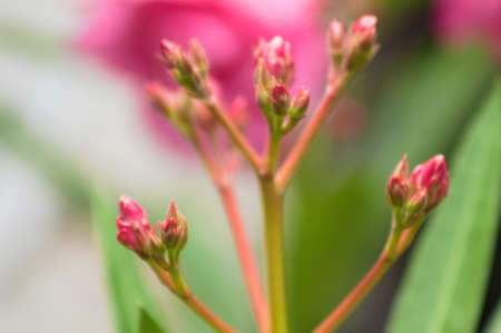 Close up of pink oleander flower. Macro shot with shallow depth of field