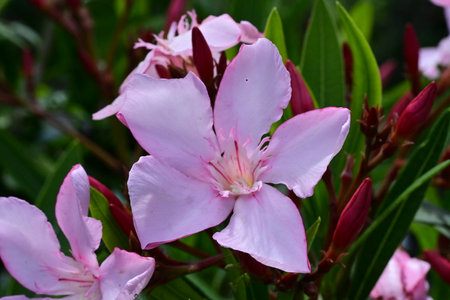 Saint Gallen, Switzerland, August 17, 2024 Nerium Oleander or rosebay plant at the botanical garden