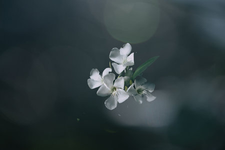 The Bouquet of White Oleander Flowers Blooming in The Garden , in The Dark Background