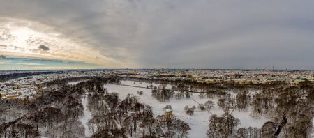 Aerial view of Munich at winter season in the snow, Germany