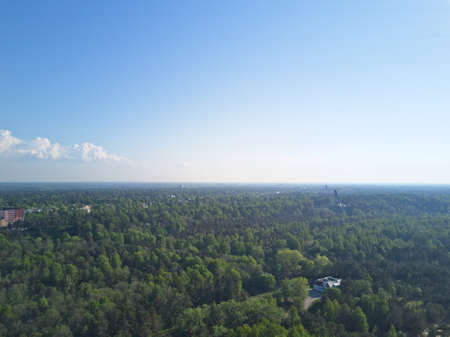 Aerial view of a house surrounded by forest. Solitude with nature, residential buildings in a dense forest