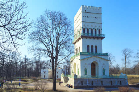Park in the spring in Pushkin in the suburbs of St. Petersburg in winter