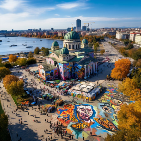 Experience the awe-inspiring aerial view of Belgrade's iconic landmarks, adorned with vibrant street art and surrounded by a bustling cityscape. Immerse yourself in the lively atmosphere as you witness diverse groups of locals and tourists engaged in various free activities. Capture the charm of a charming park where people enjoy picnicking, explore the vibrant street market, or indulge in captivating street performances. Discover money-saving tips as text overlays, uncover hidden gems, and marvel at the city's rich cultural heritage.