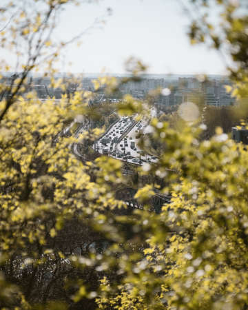 Top view of trees and people at Petrin Tower in Prague