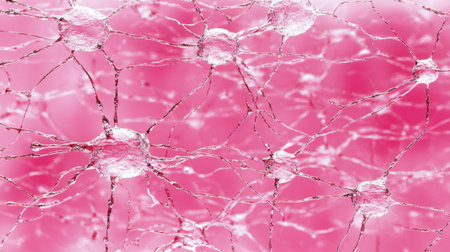 This visually striking image showcases a detailed network of neurons on a vibrant pink background, exemplifying the complex communication pathways within the human brain.