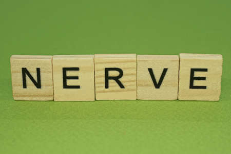 gray word nerve from small wooden letters on a green table