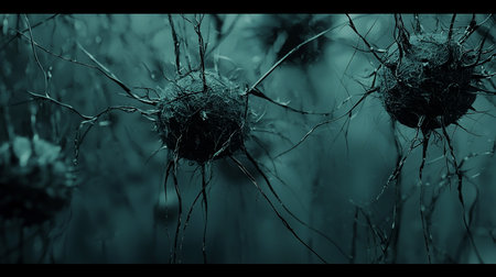 Complex network of neurons showing intricate connections in a biological structure under microscopic view