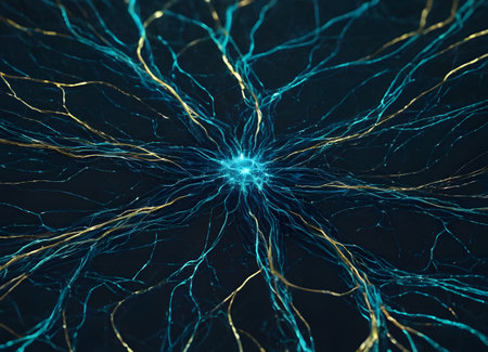 Abstract electric nerves or lightning-style glowing branches over dark background. Sci-fi, energy, or biology themed wallpaper or illustration. Generative AI
