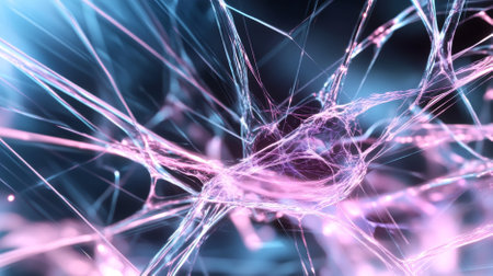 Captivating abstract of a vibrant neural network, pulsing with electric blue light. Symbolizes connection, innovation, and the power of thought. Perfect for science, tech, and medical themes.