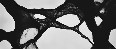 Intricate patterns of veined black ink against a clear white backdrop