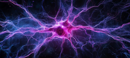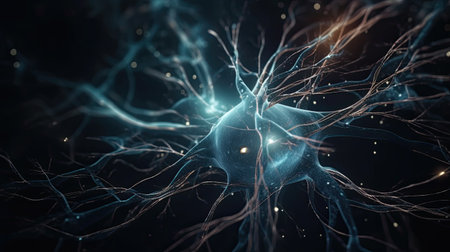 Glowing nerve cells in futuristic space backdrop generated by artificial intelligence