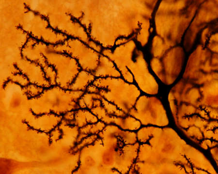 Dendritic tree of a Purkinje neuron stained with the silver Golgi method. The dendrite surface is full of small dendritic spines.