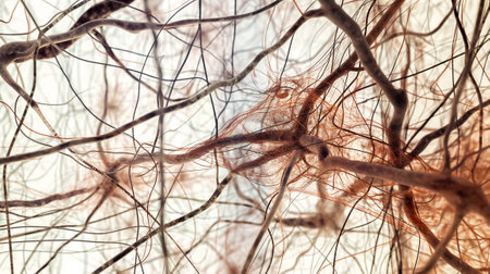 Microscopic view of neurons. Brain connections. Synapses. Communication and cerebral stimulus. Neural network circuit, degenerative diseases, Parkinson, Alzheimer. 3d rendering