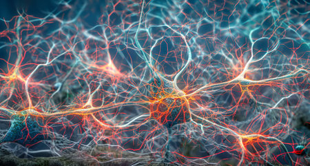 Experience the dynamic pulse of the mind with this stunning visual of a glowing neural network. Perfect for science, technology, and innovation themes, it sparks ideas and conveys complex thought.