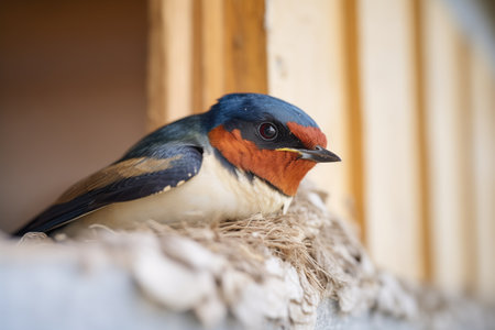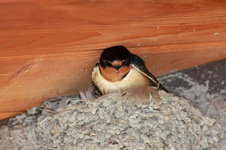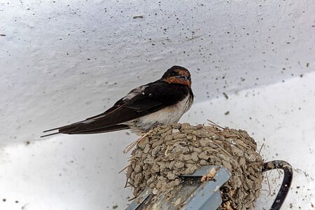 Swallow bird (Hirundo rustica) perching on the nest