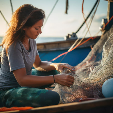 The Unseen Fisher: Anonymous Hand Skillfully Tackling Fishing Net Threads to Secure Daytime Catch
