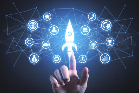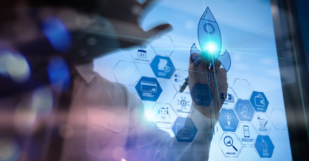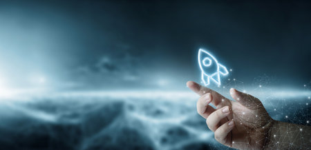 Startup launch and business growth concept, rocket symbolism, entrepreneurship, startup innovation, and early-stage success strategies for new business development and expansion.