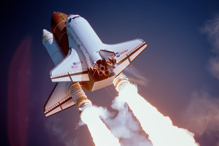 A space shuttle launching into orbit with cutting-edge propulsion systems. --ar 3:2 Job ID: c7fbbec2-3171-4156-8e6c-941857e26e57