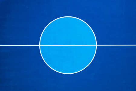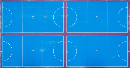 Sport field court background. Light blue rubberized and granulated ground surface with white lines. Top view