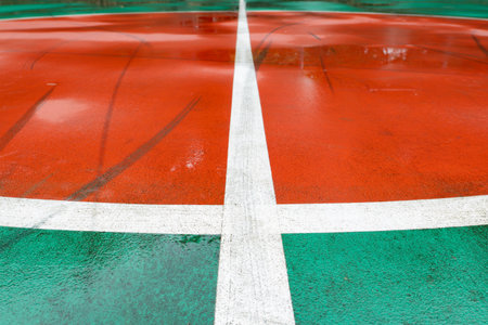 Street basketball court.Colorful basketball lines on an outdoor court.