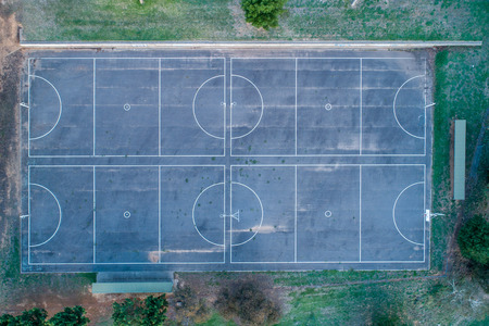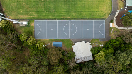 Drone aerial photograph of the Netball courts at Summerhayes Park in the town of Winmalee in the Blue Mountains in New South Wales, Australia.
