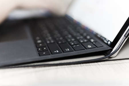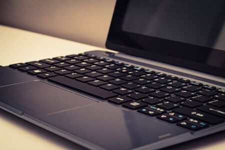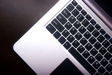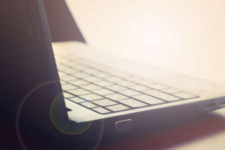 closeup of laptop keyboard, selective focus, technology concept