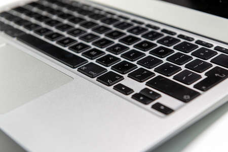 Modern laptop keyboard close up