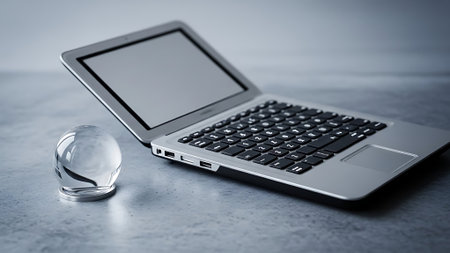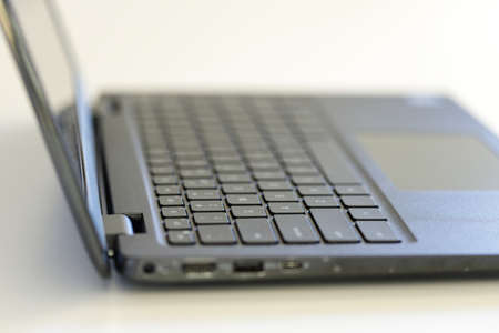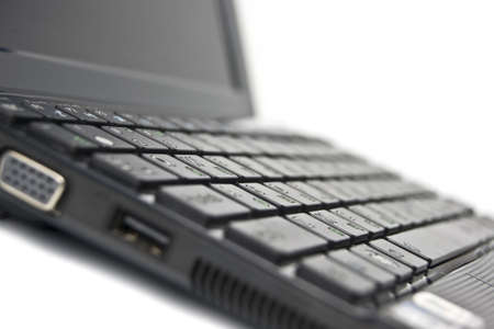 Laptop on white background, shallow depth of field.