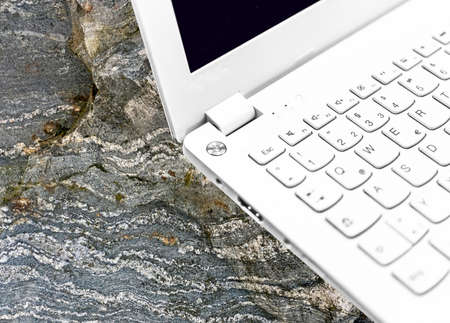 Laptop, with low depth of field, taken on a gneiss from the Palaeozoic, photomontage