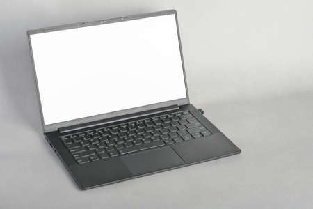 Laptop with blank screen on gray background, mockup template, copy space for picture or advertisment.