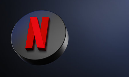 Netflix Circle Button Icon 3D on Dark Bakcgorund. Elegant Template Blank Space