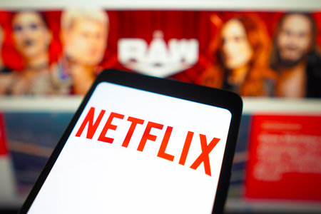 January 23, 2024, Brazil. In this photo illustration, the Netflix logo is displayed on a smartphone screen and WWE Raw logo in the background
