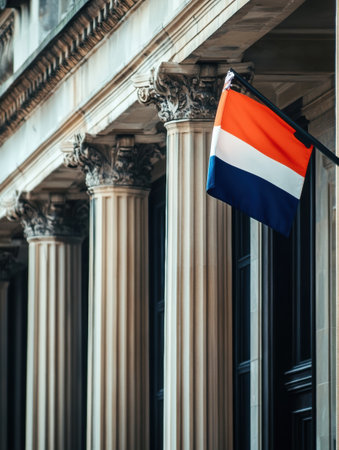 A majestic court building features classical columns and a national flag, representing the essence of justice and law in a significant location.