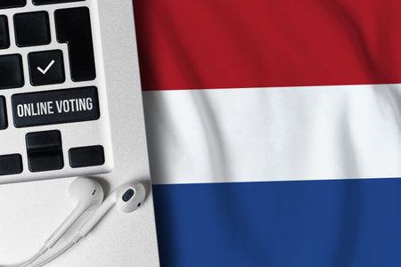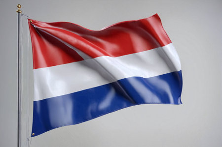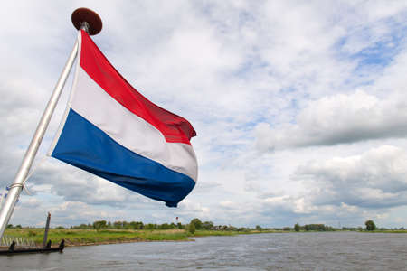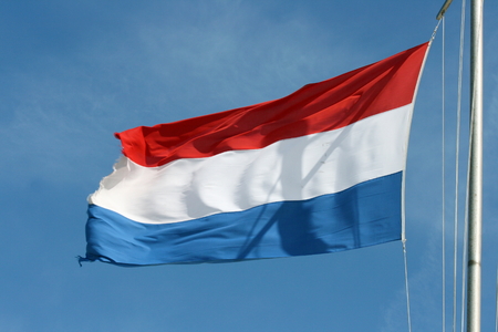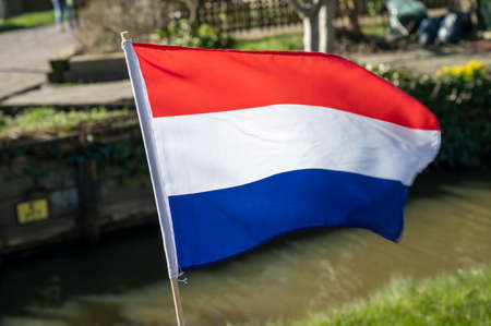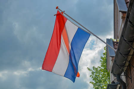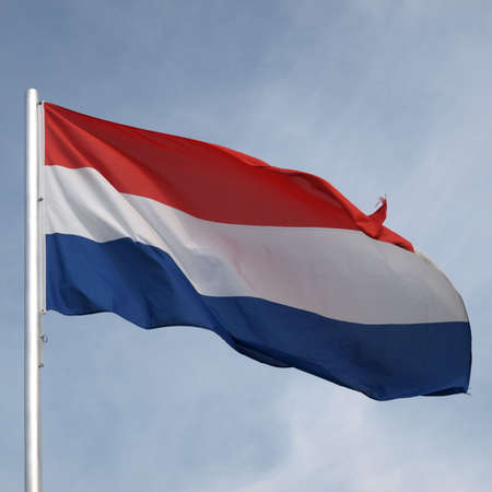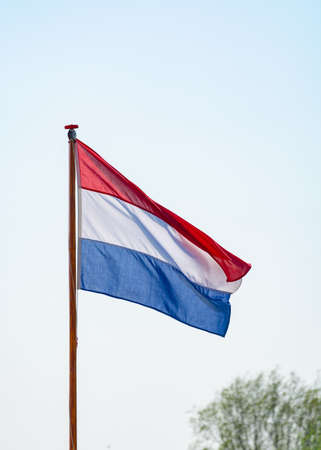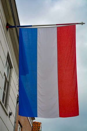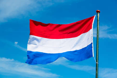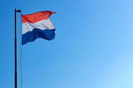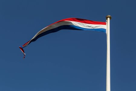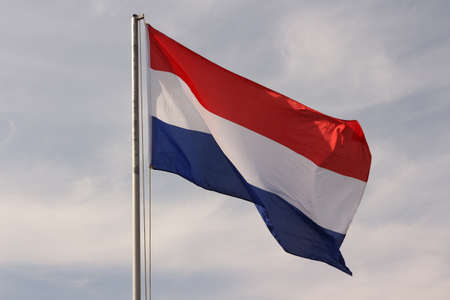 Red white blue flag flutters in the wind as a sign of the country Dutch
