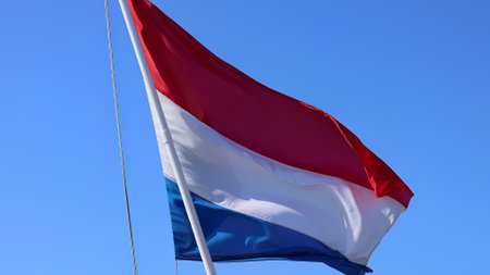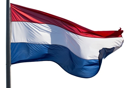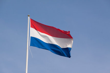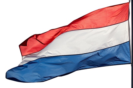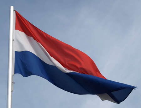 Holland Netherlands Flag proudly waving in the air with blue sky in the background.
