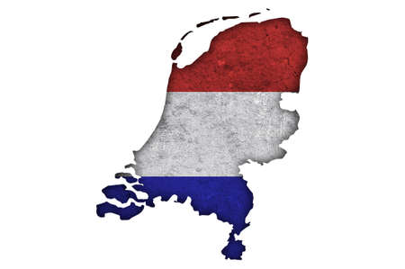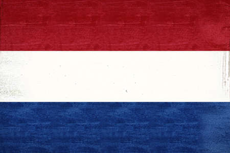 Realistic panoramic 3D illustration of the dark and grungy national flag of the Netherlands