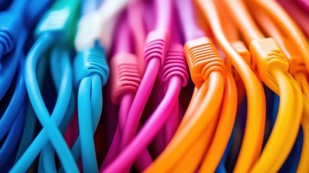 A stunning close-up view of colorful cables arranged in a vibrant pattern. This image showcases the beauty of technology through vivid colors and intricate details.