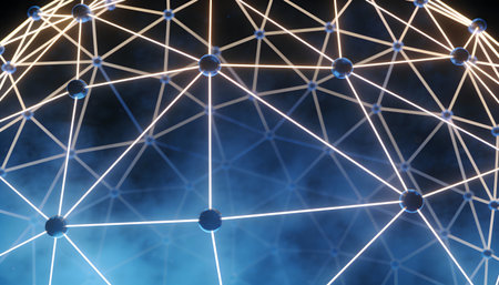 Connected network nodes abstract visualization, technology concept backdrop