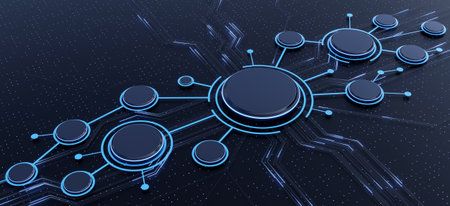 Futuristic blue circuit board background with glowing connection nodes and data flow lines concept- 3D rendering