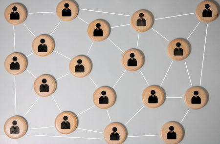 Connectivity and social connections concept with wooden blocks.