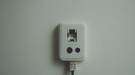 A modern electrical outlet installed on a plain wall, showcasing a clean design in a minimalistic setting. Ideal for home and office use with easy access for devices.