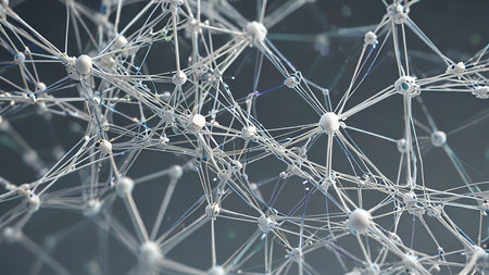 3d rendering of a network of connected dots and lines on a dark background